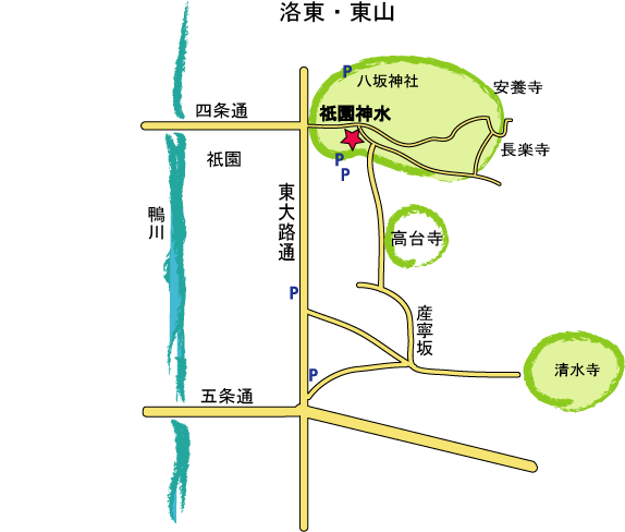 駐車場 八坂公園地下駐車場・周辺コイン式駐車場いくつか有り。