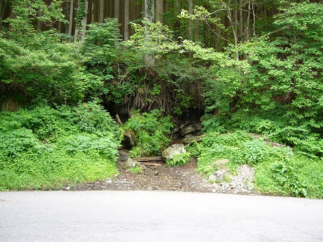 山の水は道路に面して2筋の水が結構多い水量で湧いていました。