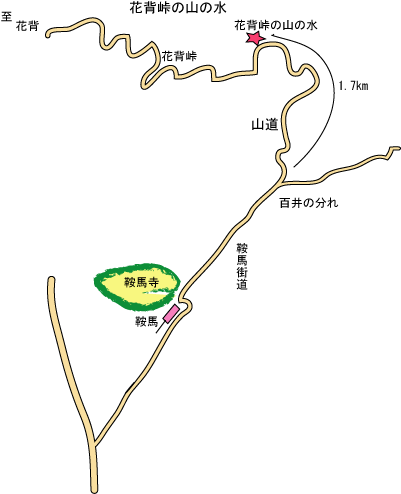 お話 鞍馬寺から鞍馬街道を花背に向って5.7qの地点にあります。