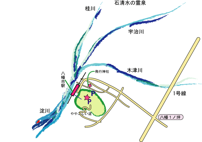 お話 宇治川、桂川、木津川が合流する所に男山があります。