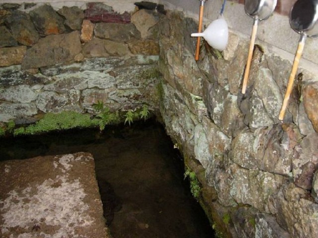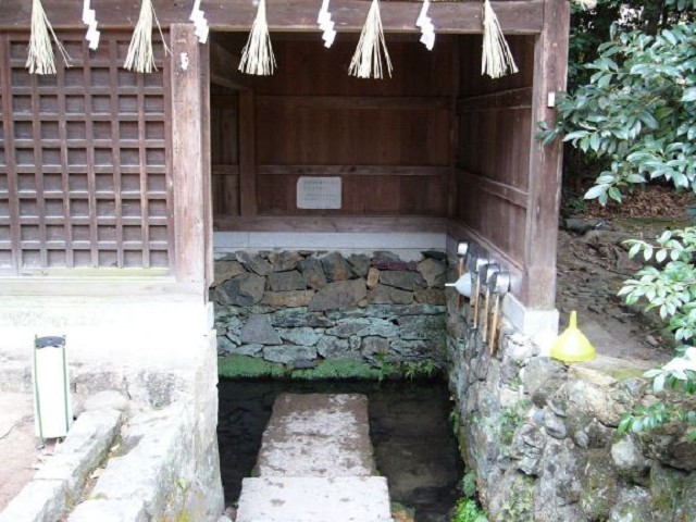 境内の右端にある小さな建物に桐原水(きりはらすい)が湧いています。