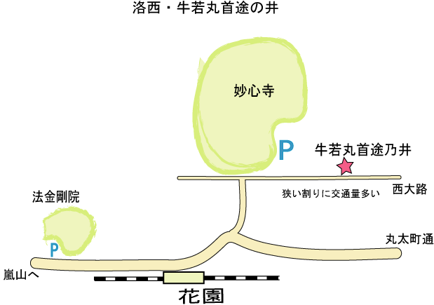 花園、妙心寺南門の下立売通りを、東へ250m行った処にあった井戸跡です。